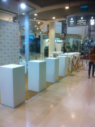 ברק במות מספרת שירותי הקמה והשכרה של פודסטים - מתקן בצורת קובייה המיועד לתצוגה ומיתוג של מוצרים.