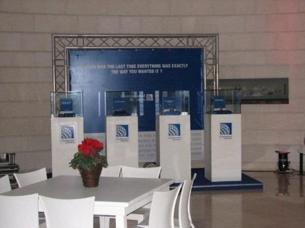 פודיום בשילוב קוביית זכוכית.