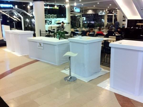 שולחנות עם עיטוף בד לייקרה.